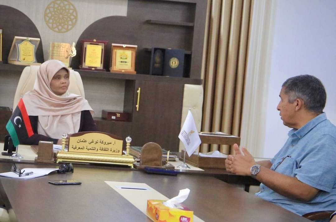 استقبلت وزيرة الثقافة والتنمية المعرفية مبروكة توغي، أمس الثلاثاء، الدكتور محمد فرج الشكشوكي رئيس مصلحة الآثار، وبحثت سبل تعزيز التعاون المشترك بين وزارة الثقافة والتنمية المعرفية ومصلحة الآثار، وذلك بهدف تنسيق العمل المشترك.