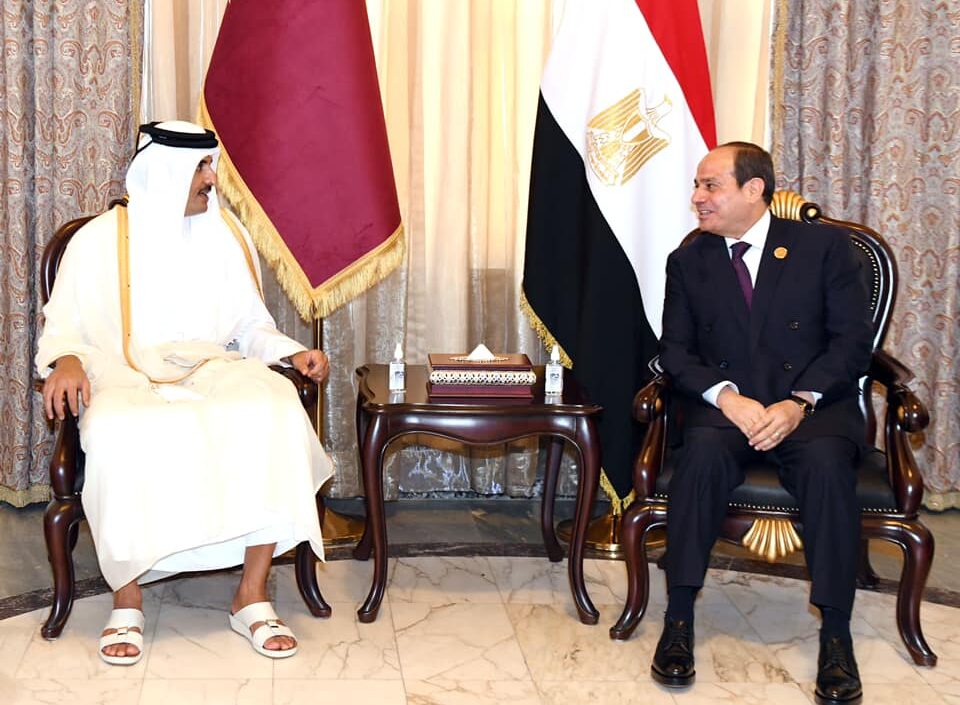 من جانبه؛ أعرب أمير دولة قطر عن تقديره للتطورات الإيجابية التي تشهدها العلاقات المصرية القطرية، وإشادته بما تم في الآونة الأخيرة من تبادل للزيارات واستئناف لأطر التعاون بين البلدين، مؤكداً في هذا الإطار تطلع قطر لتعزيز التباحث مع مصر حول سبل تعزيز العلاقات الثنائية، بما يخدم تطلعات الدولتين، خاصةً في ضوء الدور الإستراتيجي والمحوري الذي تقوم به مصر في سبيل ترسيخ الأمن والاستقرار والتنمية على الصعيد الإقليمي وفي إطار الدفاع عن قضايا الأمة العربية.