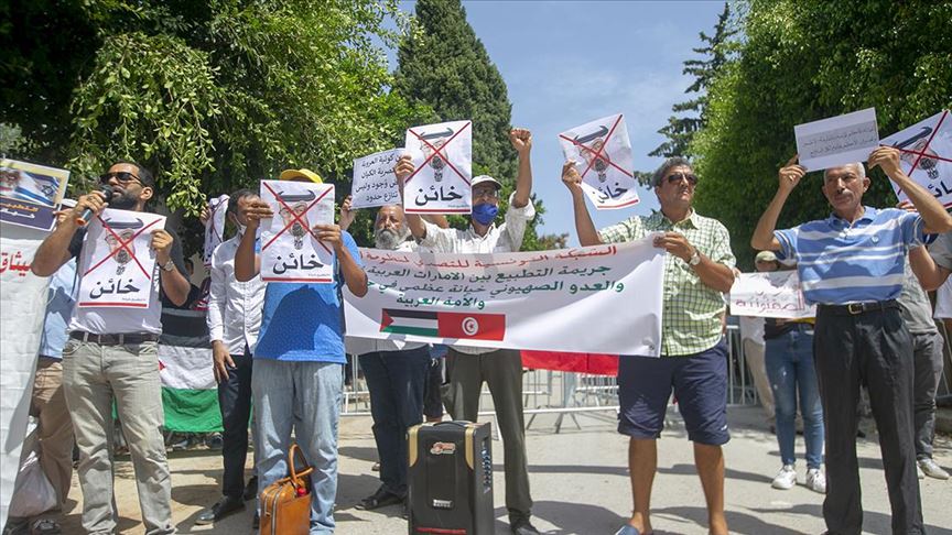 ووفق وكالة ” الأناضول” للأنباء، رفع المحتجون الأعلام الفلسطينية، ولافتات كتبت عليها عبارات “التطبيع خيانة عظمى”، و”مسجدنا ولا هيكلهم”، و”القدس بوصلة الأمة”، بشارع الحبيب بورقيبة، وسط العاصمة.