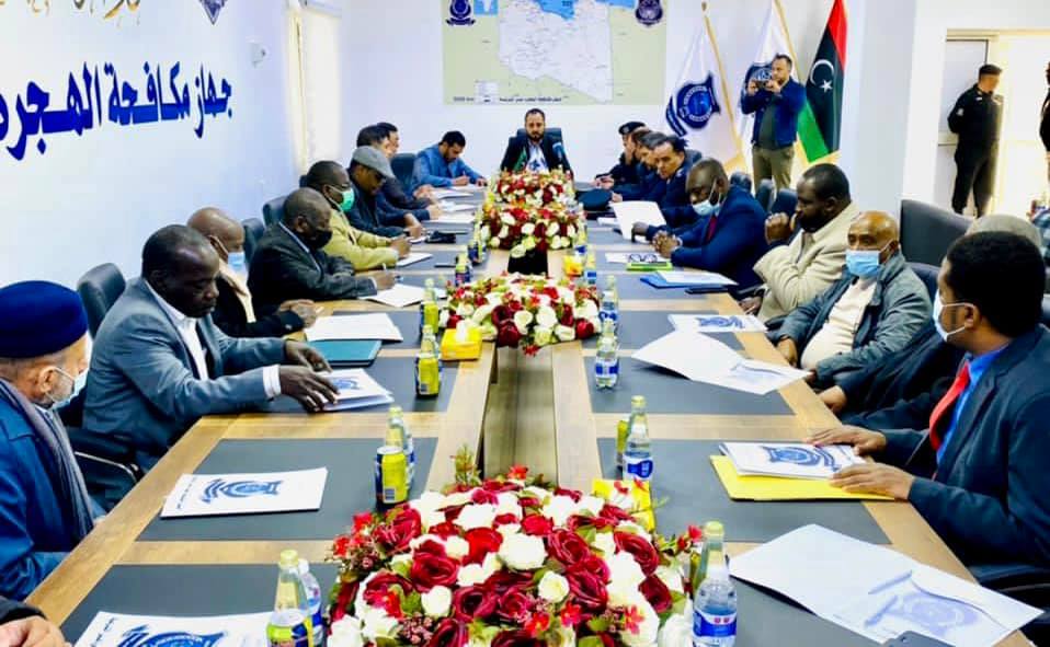 عًقِد بمقر جهاز مكافحة الهجرة غير الشرعية، في العاصمة طرابلس، اليوم الاثنين، اجتماع ضم رئيس الجهاز، وعدد من ممثلي سفارات الدول الإفريقية وسفارة البنغلاديش وباكستان لدى ليبيا والقنصل المصري.
