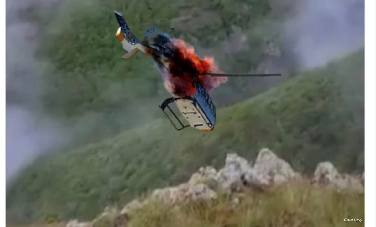وفي منشور عبر منصة “إكس” أرفق بصورة مروحية تشتعل فيها النيران، ادعى تعليق أن الطائرة أُطلق عليها النار “من السماء بواسطة ليزر فضائي”.