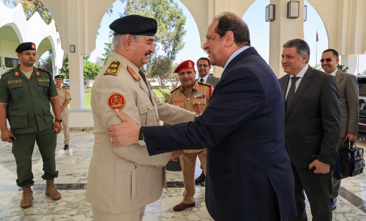 ورحب حفتر بالوفد الزائر، مؤكداً على عمق العلاقات الأخوية بين ليبيا ومصر الشقيقة، بحسب ما نقل إعلام قوات حفتر..