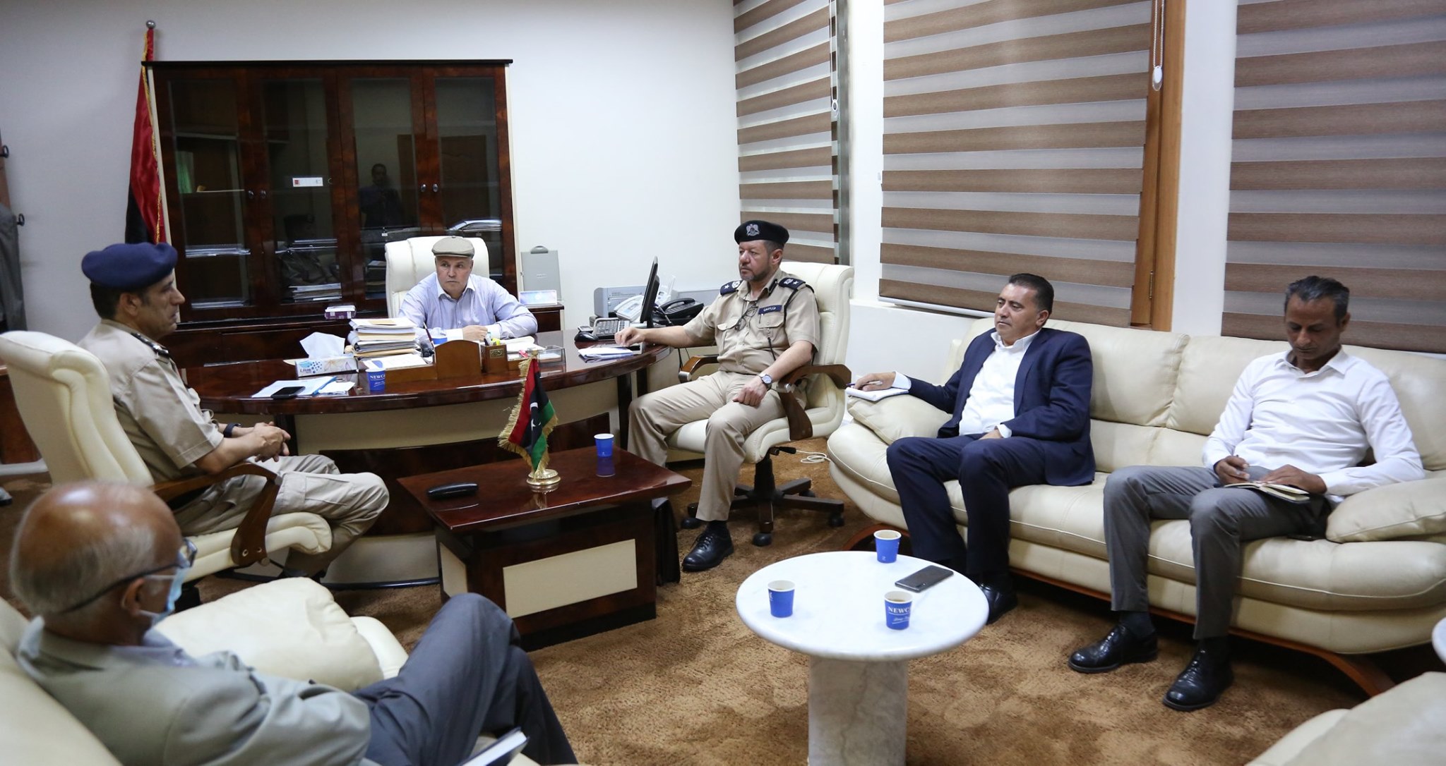 بحث وزير الدولة لشؤون المهجرين والنازحين بحكومة الوفاق يوسف جلالة، خلال اجتماع عقده اليوم الثلاثاء، مع مساعد وكيل وزارة الداخلية للشؤون الأمنية العميد محمد المداغي، ومدير مكتب النازحين بوزارة الداخلية العقيد أكرم الراجحي، الخطوات التي يجب اتخاذها فيما يتعلق بعودة النازحين في المناطق الآمنة.