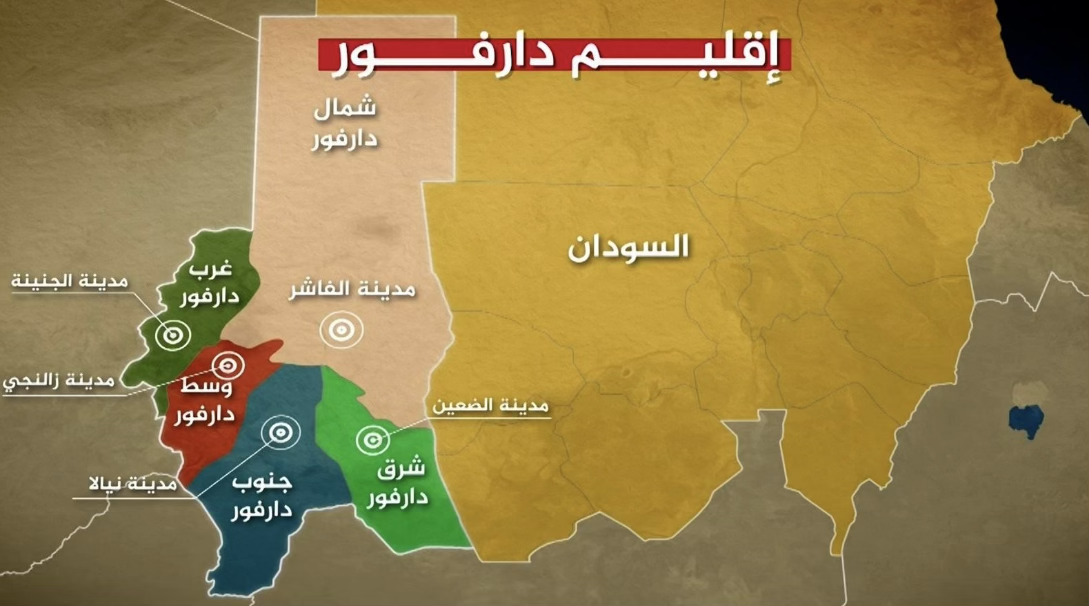 كان من الواضح بعد تفجر الصراع في دارفور في عام 2002م وتدويل قضية الصراع في دارفور بأن مخطط تقسيم السودان لن يتوقف عند الجنوب بل سيمتد إلى دارفور أيضأ، في أبريل عام 2023م وبعد فشل المسار السياسي بين المكون المدني من أحزاب وقوى سياسية وتحالف المكون العسكري البرهان – حميدتي اشتعلت الحرب بين تحالف المكون العسكري البرهان – حميدتي وهي حرب أدت إلى كارثة إنسانية في السودان وخسائر اقتصادية فادحة، وبعد خسارة حميدتي لمواقع سيطرة قواته في الخرطوم العاصمة وما حولها من مناطق ومدن استراتيجية هامة بات من الواضح بأن حميدتي بدا في تركيز ثقل عمل قواته في دارفور حيث حاصرت قواته مدينة الفاشر ثم دخلتها وارتكبت فيها جرائم بشعة في حق المدنيين، وقبل ذلك ارتكبت قوات حميدتي مجازر في مدينة الجنينة على الحدود السودانية – التشادية، هذا التراجع لقوات حميدتي إلى دارفور يمكن النظر إليه من زاوية أخرى تتعلق بتقسيم جديد للسودان وتحديدا في دارفور هذه المرة، وما يعزز هذا السيناريو هو ما قام به حميدتي في 31 أغسطس 2025م، حيث أدى حميدتي اليمين الدستورية رئيساً للمجلس الرئاسي في مدينة نيالا عاصمة جنوب دارفور، كما تم اختيار محمد حسن التعايشي رئيسا لحكومة السلام والوحدة.
