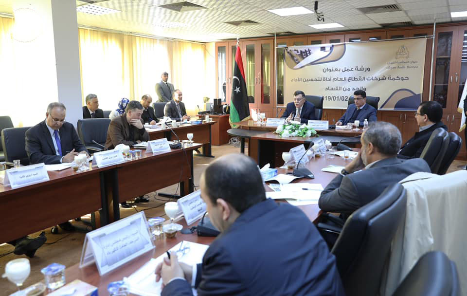 وقال السراج خلال الورشة التي حضرها أيضًا رئيس ديوان المحاسبة، ووزراء (التخطيط-الإقتصاد-المالية والمواصلات)، ومدير عام المركز الوطني لدعم القرار، والمدير التنفيذي للشركة العامة للكهرباء، وممثل عن المؤسسة الليبية للإستثمار، ومدراء الإدارات بالديوان. إن هذا القرار جاء تماشياً مع مفاهيم وقواعد الحوكمة، حيث تضمن العديد من القواعد والمبادئ الحاكمة للعملية الإدارية في الشركات.