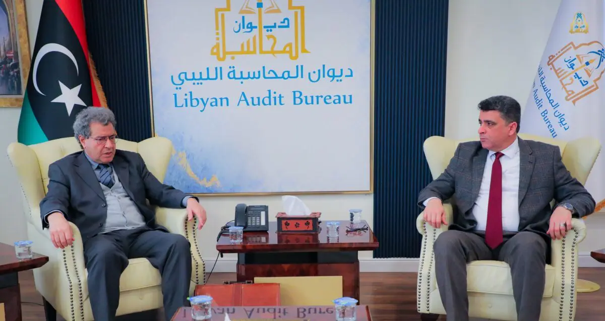 كما تناول اللقاء آلية اختيار المراجعين الخارجيين لمراجعة حسابات المؤسسة الوطنية للنفط والشركات التابعة وفق ما نصت عليه القوانين المنظمة لقطاع النفط.
