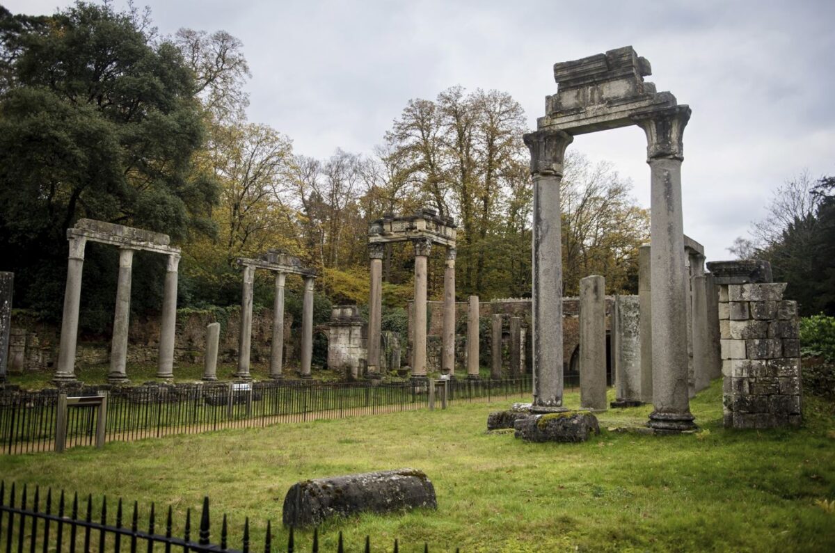 وكانت القطع الأثرية المزخرفة من الأعمدة الحجرية والرخامية والركائز قد نُقلت في القرن التاسع عشر من قبل الدبلوماسي البريطاني هانمر وارينجتون مدعيا أنها هدية، إلا أن ليبيا تقول إنها سُرقت ولا يوجد دليل على أنها قدمت كهدية.