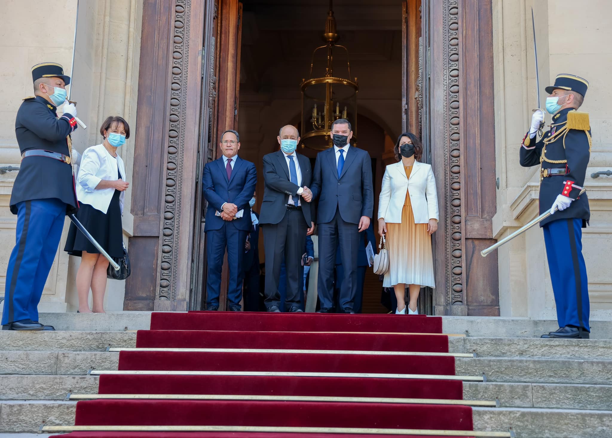 والتقى رئيس الحكومة، بمقر وزارة الخارجية الفرنسية، بالوزير جان إيف لودريان، بحضور وزير الخارجية والتعاون الدولي نجلاء المنقوش، ووزير الدولة لشؤون مجلس الوزراء ورئيس الحكومة عادل جمعة والسفيرة الفرنسية لدى ليبيا.