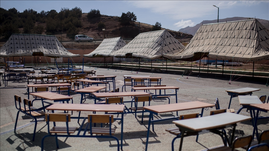 وقد بدأت وزارة التعليم المغربية بنصب 150 خيمة، وستجهزها بالمعدات التربوية والتدريبية اللازمة والألواح الشمسية، لاستخدامها كمدارس.