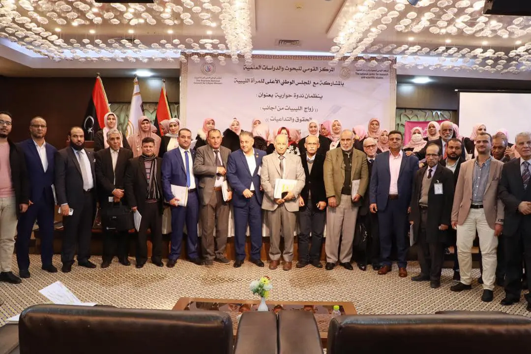 عُقِدت اليوم السبت، بفندق باب البحر في العاصمة طرابلس، الندوة العلمية الموسومة (زواج الليبيات من أجانب.. الحقوق والتداعيات) تحت شعار (نحو زواج آمن لليبيات من جانب يصون الأمن القومي الليبي) بتنظيم وإشراف المركز القومي للبحوث والدراسات العلمية بالمشاركة مع المجلس الوطني الأعلى للمرأة الليبية.