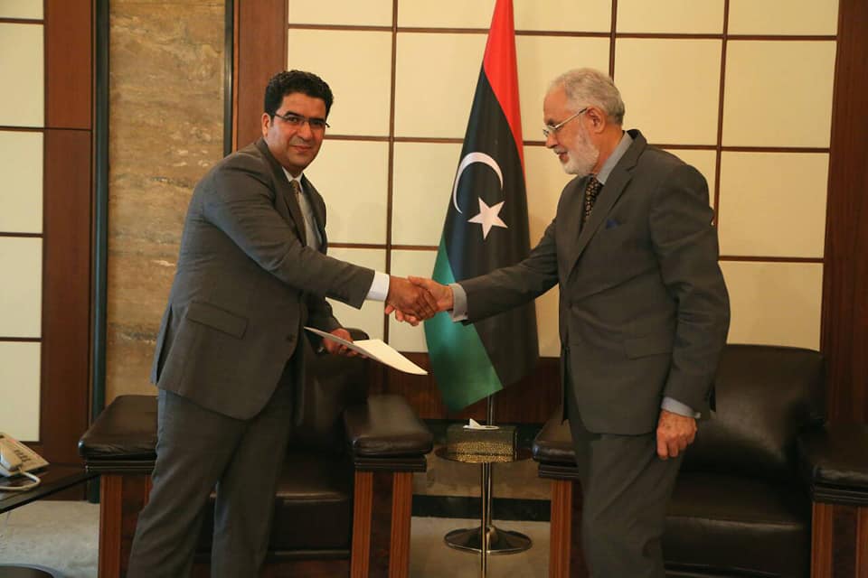 حيث سلم الوزير محمد سيالة بمكتبه بمقر وزارة الخارجية الليبية للسفير عمر الترهوني أوراق اعتماده لاستلام مهامه رسمياً في خطوة لتطوير التعاون و العلاقات بين البلدين.