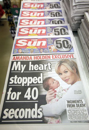 وتصدرت قصة “أماندا هولدين” أحد أعضاء هيئة حكام برنامج “بريتن غوت تالنت” بعد ولادة ابنتها الأولى وكيف توقف قلبها والمتاعب التى واجهتها، الصحفة الاولى من الصحيفة الجديدة التي يعتقد أنه طبع منها نحو ثلاثة ملايين نسخة.
