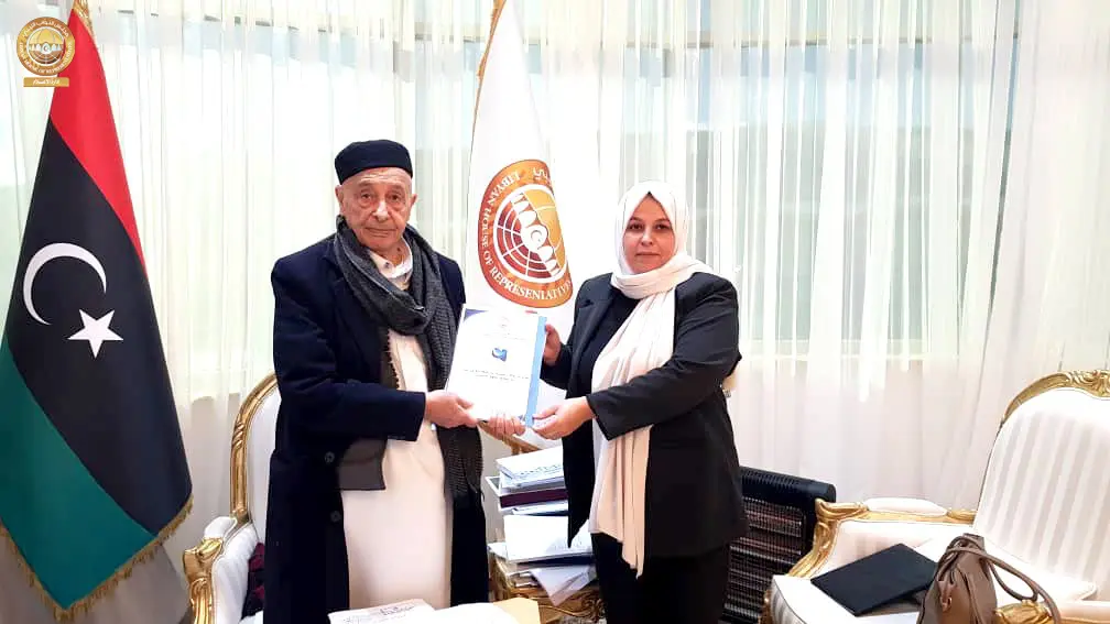 تسلم رئيس مجلس النواب عقيلة صالح، بمكتبه في مدينة القبة، التقرير السنوي عن أوضاع الهجرة غير الشرعية في ليبيا من منظور حقوق الإنسان.
