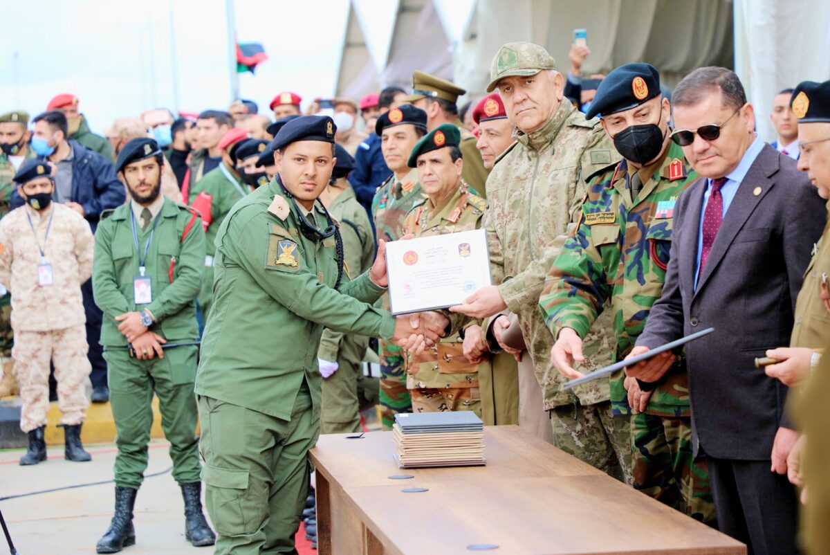 أشرف رئيس حكومة الوحدة الوطنية وزير الدفاع عبدالحميد الدبيبة، رفقة رئيس الأركان العامة للجيش الليبي الفريق أول ركن محمد علي الحداد، اليوم الأحد، بمركز تدريب حمزة بن عبد المطلب في طرابلس، على حفل تخريج الدفعة الأولى من منتسبي اللواء 111 مجحفل التابع لرئاسة الأركان العامة.