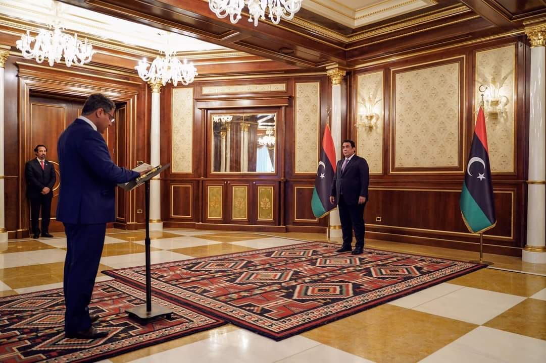 من جهتهم، تعهد السفراء، وهم إبراهيم سلطان المجبري سفير ليبيا لدي جمهورية أوغندا، وأمل الجراري سفيرة ليبيا لدى مملكة بلجيكا، وخطاب حسين محمد سفير ليبيا لدي مملكة السويد، وسالم مديقش سفير ليبيا لدى مملكة الدنمارك، بالعمل على تمثيل ليبيا في الخارج أحسن تمثيل، مؤكدين حرصهم على تطوير علاقات ليبيا مع الدول الموفدين إليها، بحسب ما نقل المكتب الإعلامي بالمجلس الرئاسي.