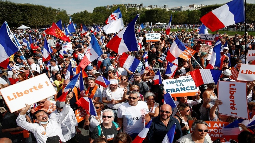 تتواصل في فرنسا، المظاهرات المناهضة للتصريح الصحي الخاص بكورنونا،، حيث تظاهر حوالى 140 ألف شخص، بينهم نحو 18 ألفا في باريس، أمس السبت، ضد التصريح الصحي المفروض في مدن عدة بفرنسا، للأسبوع الثامن على التوالي.