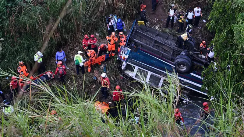 توفي 51 شخصا على الأقل، الاثنين، إثر سقوط حافلة من أعلى جسر في ضواحي عاصمة غواتيمالا.