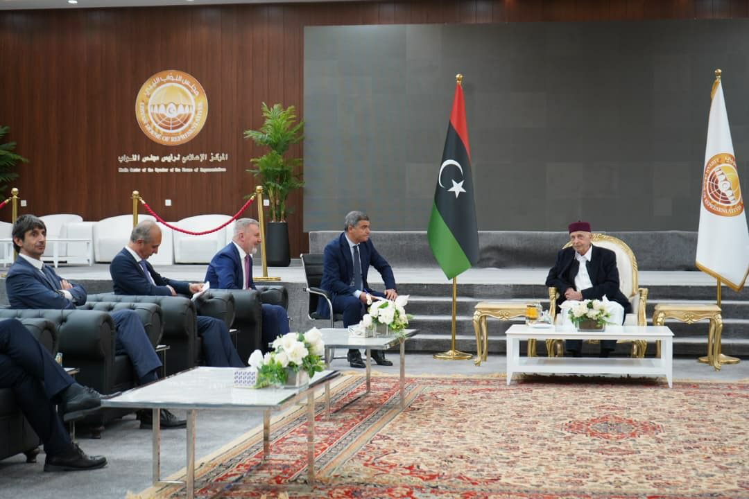 استقبل رئيس مجلس النواب المستشار عقيلة صالح في مكتبه بمدينة القبة وفداً برلمانياً إيطالياً رفيع المستوى، برئاسة رئيس اللجنة البرلمانية لأمن الجمهورية الإيطالية لورينزو غيريني، بحضور السفير الإيطالي لدى ليبيا جيانلوكا ألبيريني.