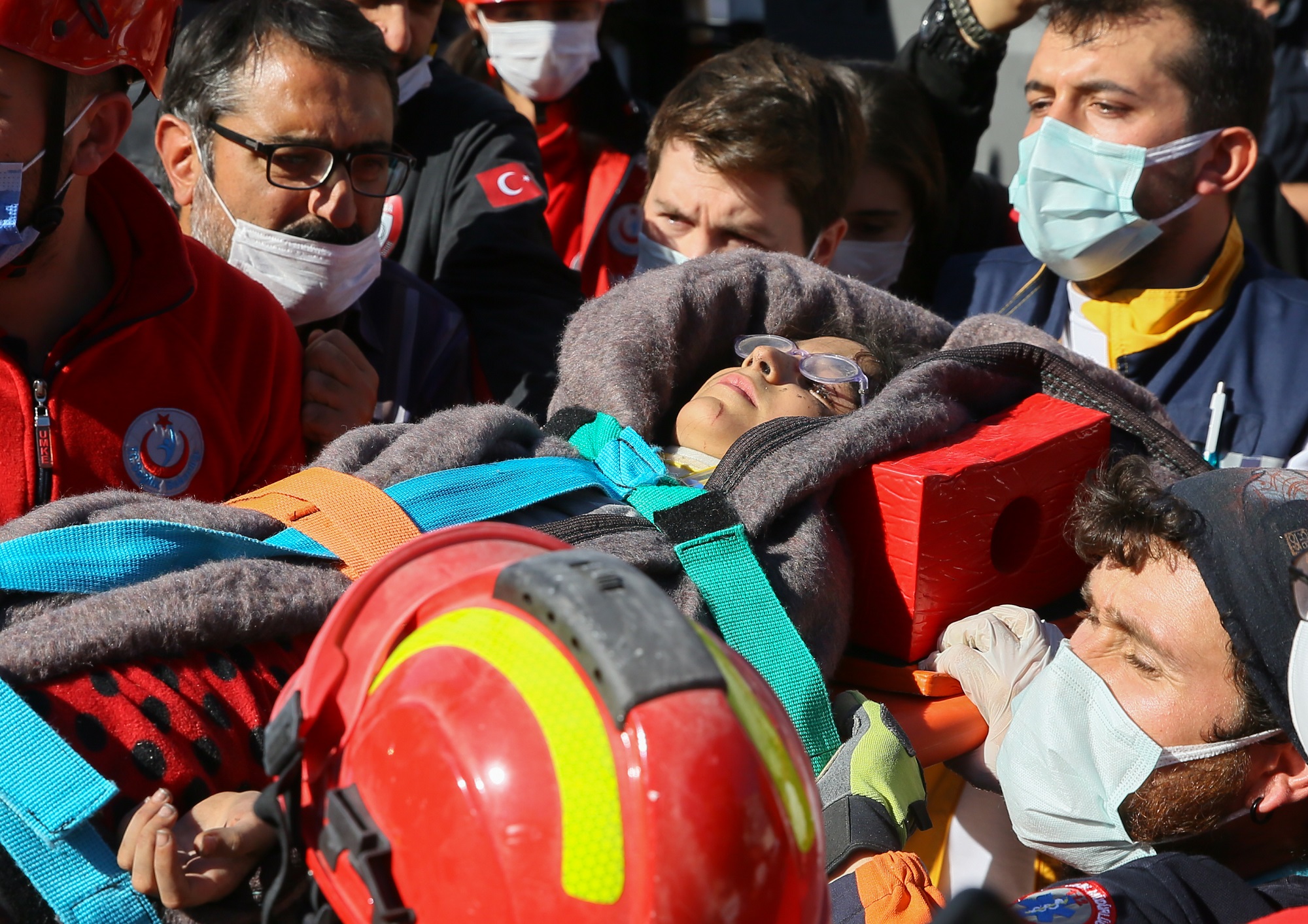 رجال الإنقاذ في مدينة إزمير التركية تمكنو من إنقاذ طفلة عمرها 3 سنوات بقيت عالقة تحت الأنقاض أكثر من 65 ساعة.