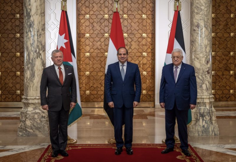 من جانبه صرح المتحدث الرسمي باسم رئاسة الجمهورية المصرية، بأن القمة المصرية الفلسطينية الأردنية، شهدت عقد جلسة مباحثات مغلقة، تلتها جلسة ضمت وفود الدول الثلاث، حيث هدفت المباحثات تنسيق المواقف والرؤى إزاء عدد من الموضوعات المرتبطة بالقضية الفلسطينية، والتي تمثل الأساس الحقيقي لاستقرار المنطقة وتحظى بالأولوية لدى كل الشعوب العربية، أخذاً في الاعتبار المستجدات التي طرأت خلال الفترة الأخيرة، خاصةً ما يتعلق بعملية السلام وسبل تثبيت التهدئة عقب التصعيد في الأراضي الفلسطينية في شهر مايو الماضي.