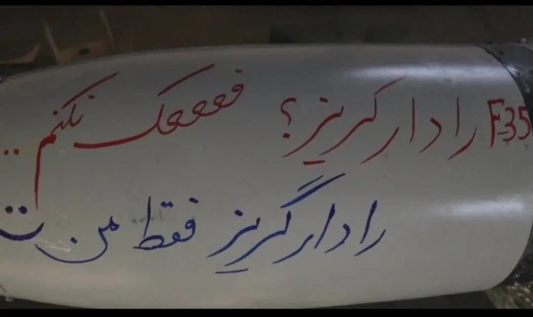 نشرت وسائل الإعلام الإيرانية صباح الاثنين رسالة ساخرة على صاروخ تابع للحرس الثوري، موجّهة إلى الطائرات الشبحية الأمريكية من طراز “إف-35”.