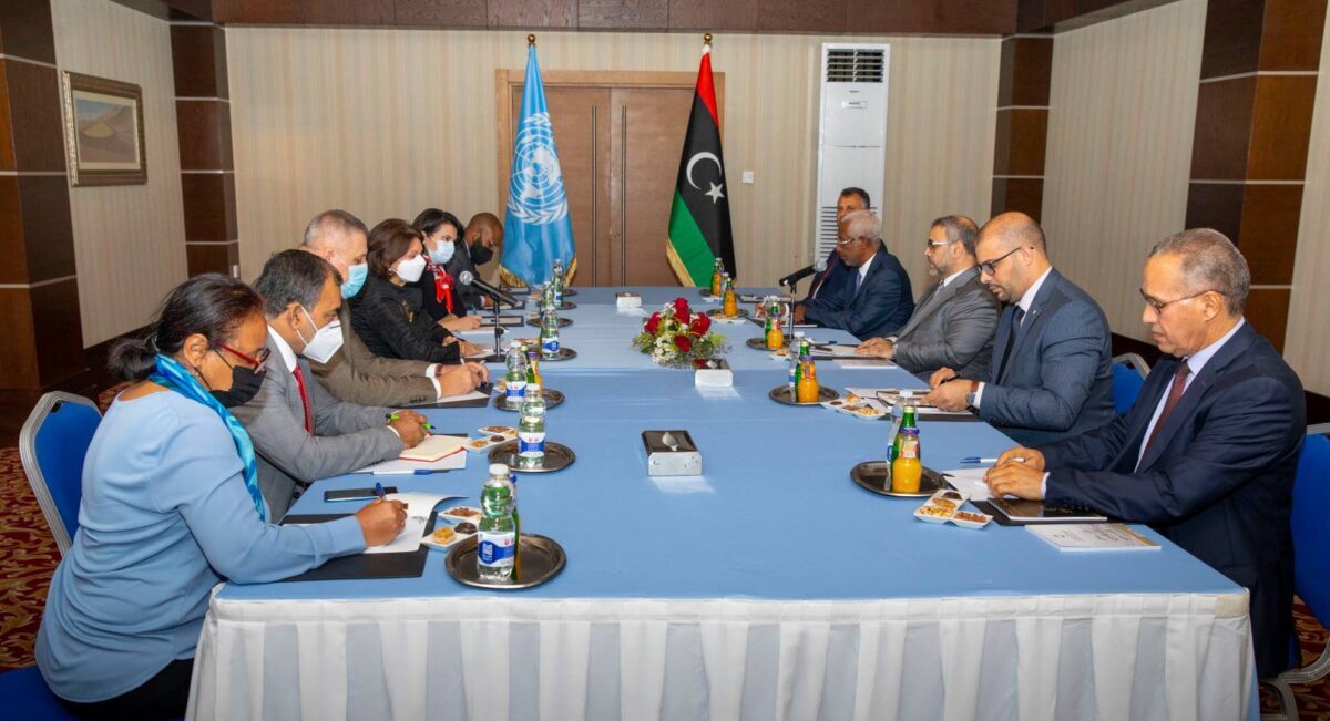 عقد رئيس المجلس الأعلى للدولة خالد المشري، رفقة نائبيه مسعود عبيد، وعمر بوشاح، ومقرر المجلس سعيد كلا، ورئيس لجنة قوانين الانتخابات السنوسي القمي، اليوم الثلاثاء، لقاءً مع وكيلة الأمين العام للأمم المتحدة للشؤون الساسية وبناء السلام روزماري دي كارلو، ورئيس بعثة الأمم المتحدة إلى ليبيا يان كوبيش، بمقر المجلس في العاصمة طرابلس.