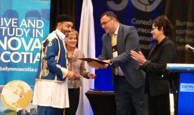 كرم المكتب الكندي للتعليم الدولي (CBIE) الطلبة الليبيين عواطف بن رمضان ومحمد زيدان وأنس كريميدة ومحمد البدوي؛ نظرًا لتميزهم الأكاديمي ودعمهم لمجتمعاتهم المحلية في ليبيا وأميركا الشمالية.