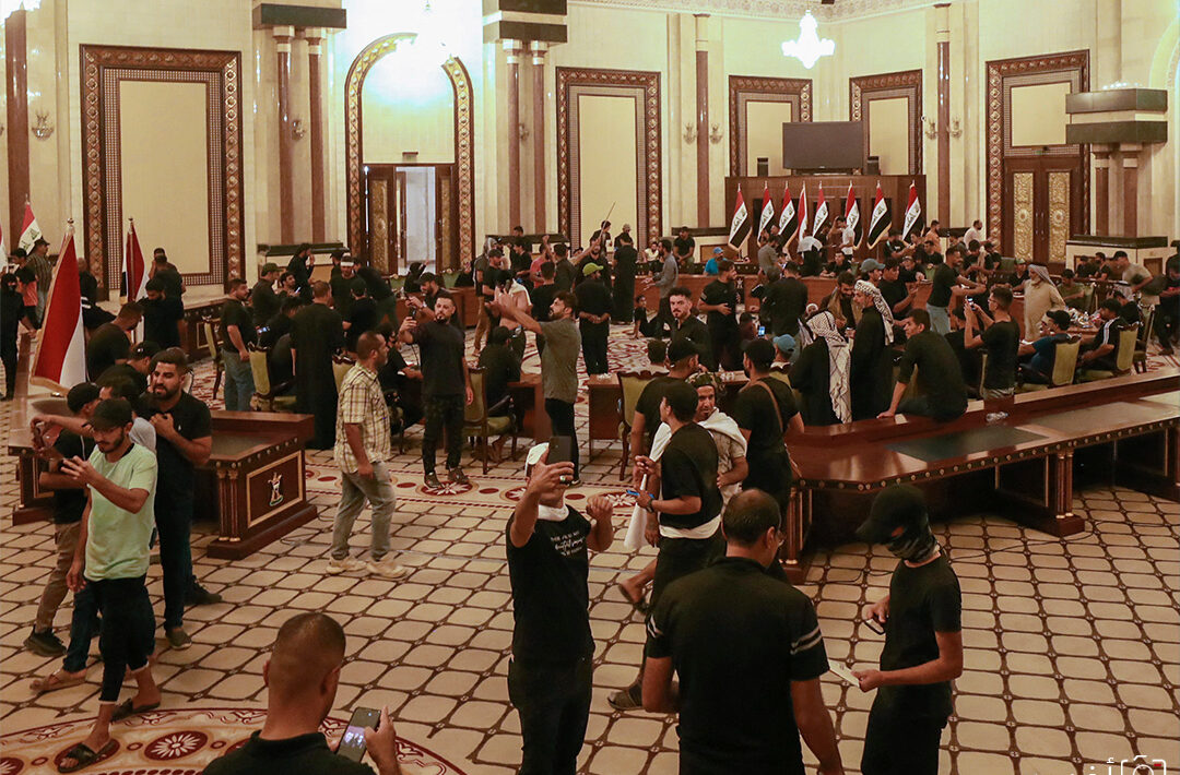 اقتحم مئات المحتجين العراقيين القصر الجمهوري، مقر اجتماعات الحكومة، بعد إعلان مقتدى الصدر زعيم التيار الصدري الشيعي اعتزال العمل السياسي، وسط تصاعد الأزمة في البلاد.