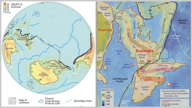 وقال مورتيمر إن الجيولوجيين عثروا في فترة مبكرة من القرن السابق على قطع غرانيت من جزر قرب نيوزيلندا وصخور متحولة في كاليدونيا الجديدة تشير إلى جيولوجيا قارية.