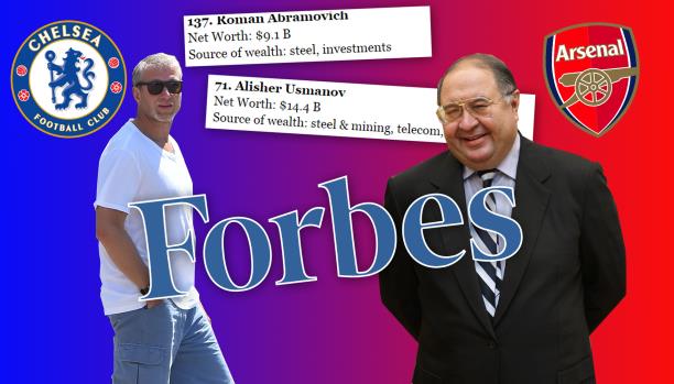 وتمكن مالك أرسنال الإنجليزي، أليشير أوزمانوف، من احتلال المركز الـ 71 في لائحة فوربس، وهو يعتبر أغنى مستثمر مالي في نادي كرة القدم في إنجلترا، حيثُ قدرت مجلة “فوربس” ثروة أوزمانوف بحوالي مليار دولار، في وقت جاء مالك الأسهم في أرسنال، ستان كروينكي، في المركز الـ 225 برصيد حوالي 6.3 مليارات يورو، الأمر الذي يجعل من فريق “المدفعجية” فريقاً يملك المال الوفير.