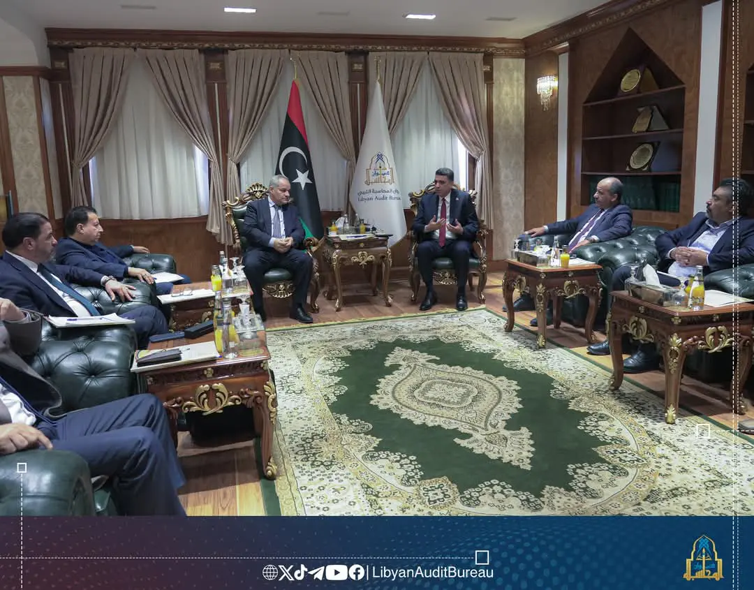 كما تناول اللقاء “الحديث عن كتاب محافظ مصرف ليبيا المركزي بخصوص طلب الموافقة على مراجعة العمليات المصرفية، و مناقشة متطلبات و أغراض ونطاق عمليات المراجعة المستهدفة، و تم الاتفاق على ضرورة توفير المتطلبات اللازمة لعملية المراجعة، وذلك وفق ما سيتم مخاطبة مصرف ليبيا المركزي به بشكل رسمي من قبل الديوان تمهيداً لدراسته”.
