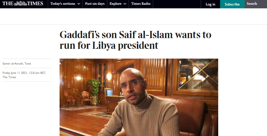 وفي سياقٍ ذي صلة، كشفت صحيفة “تايمز” البريطانية، في تقرير نشرته بتاريخ 20 يونيو 2020 عن وجود ما أسمته شبكة من المؤامرات الرامية إلى تمكين سيف الإسلام معمر القذافي من زعامة ليبيا، وأن خيوط تلك المؤامرات تقود إلى موسكو.