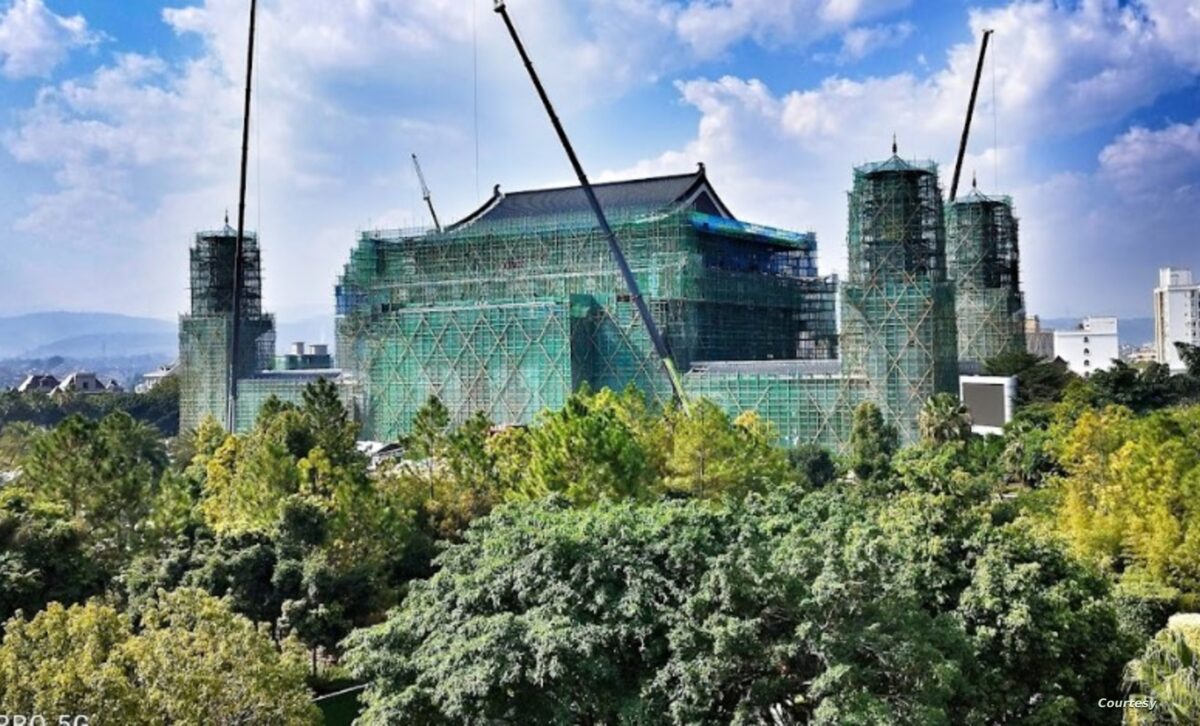 وحتى العام الماضي، كان المجمع الذي تبلغ مساحته 21000 متر مربع يضم مبنى كبيرا تعلوه قبة خضراء مزينة بهلال، محاطة بأربع قباب أصغر ومآذن مرتفعة.