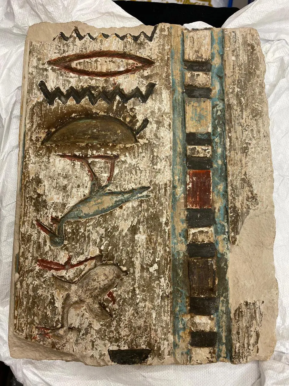 وأكدت الوزارة، أن “القطع الاثرية الـ67 التى جري استعادتها، تعد من القطع الأثرية التي تنتمي لعدد من الحقب المصرية المختلفة من أهمها قدم وساق لمومياء محنطة وقناعين وجداريتين تم انتزاعهما من مقبرة الوزير “باك آن رن إف”بسقارة، بالإضافة إلى تمثال ملكى من البرونز”.
