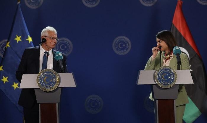 ونقلت وكالة الأنباء الليبية عن المنقوش قولها خلال المؤتمر الصحفي: “نرحب بالتعاون ودعم الاتحاد الأوروبي لحكومة الوحدة الوطنية، ولمبادرة الاستقرار في ليبيا وإجراء الانتخابات في موعدها يوم 24 ديسمبر القادم”.
