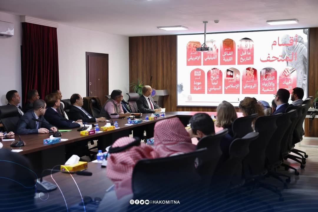 وخلال الاجتماع، اطّلع الحضور على “عرض تعريفي شامل استعرض مكونات المتحف، وأقسامه المختلفة، والتصاميم الحديثة المستخدمة في تطويره، إضافة إلى الجهود المبذولة لإبراز الموروث الثقافي والتاريخي لدولة ليبيا، وتسليط الضوء على أهمية المتحف كصرح يوثق الحضارات المتعاقبة على البلاد”.