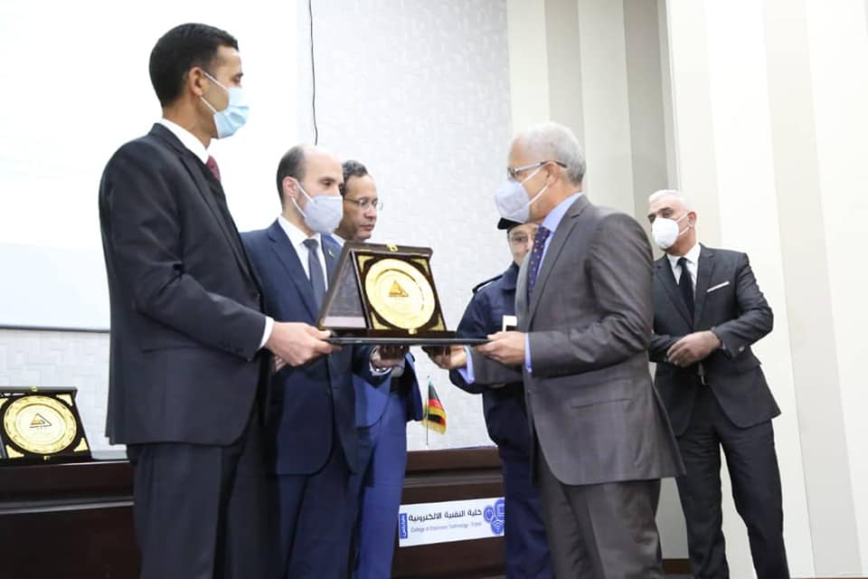 وتم خلال الاحتفالية التي أُقِيمت بمقر كلية التقنية الإلكترونية طرابلس، تسليم شهائد الاعتماد والشكر والتقدير والدروع لكل من كلية العلوم الهندسية والتقنية، كلية العلوم بجامعة سبها وكلية الصيدلة، كلية الطب البشري بجامعة طرابلس وكلية الاقتصاد، كلية الآداب بجامعة مصراتة بالإضافة إلى مدرسة الشيخ “علي سيالة” الثانوية للبنات “حكومي” ومدرسة ابن الهيثم الثانوية للبنات “حكومي” ومدرسة الصقر الحر الدولية للتعليم الأجنبي” خاص”.