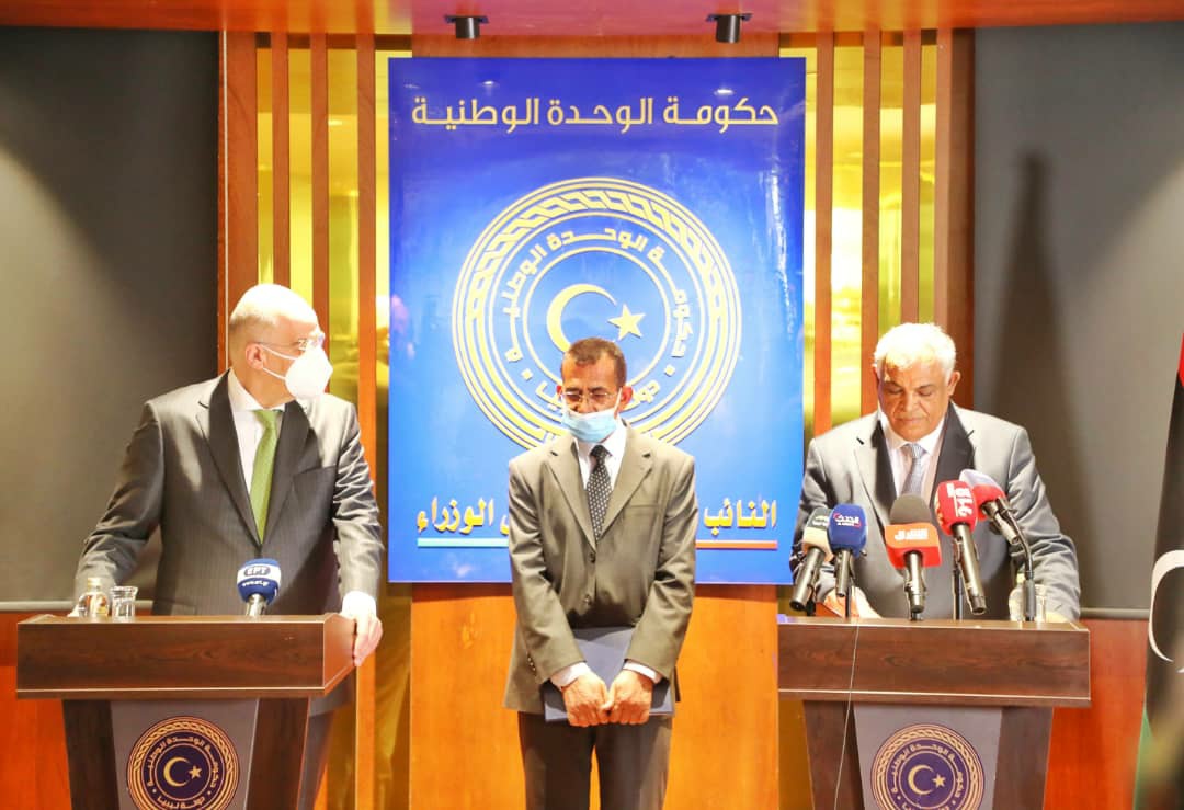 كما أكد خلال المؤتمر الصحفي الذي جمعه مع نائب رئيس مجلس الوزراء، على أهمية استئناف محادثات ترسيم الحدود البحرية بين الطرفين وعلى أهمية الحفاظ علي وحدة البلاد واستقرارها ووقف النار، داعيا إلى ضرورة خروج جميع القوات الأجنبية من البلاد.