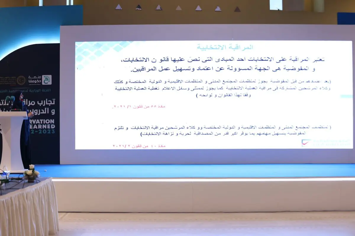 أقيمت اليوم الخميس، في العاصمة طرابلس، ندوة حول “تجارب مراقبة الانتخابات والدروس المستفادة”، والتي تنظمها اللجنة الوزارية لدعم وتنفيذ الانتخابات، وبمشاركة عدد من المنظمات المحلية والدولية العاملة في مجال مراقبة الانتخابات، وبمشاركة عدد من أعضاء برلمان الشباب.