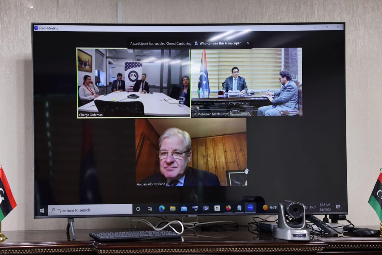 بحث رئيس المجلس الرئاسي محمد المنفي، اليوم الاثنين، مع المبعوث الأمريكي الخاص إلى ليبيا ريتشارد نورلاند، والقائم بالأعمال الأمريكي في ليبيا ليزلي أوردمان، القضايا السياسية والاقتصادية والأمنية ذات الاهتمام المشترك للوصول إلى الانتخابات خلال العام 2023م، خلال لقاء جمعهم عبر تقنية “زووم”.