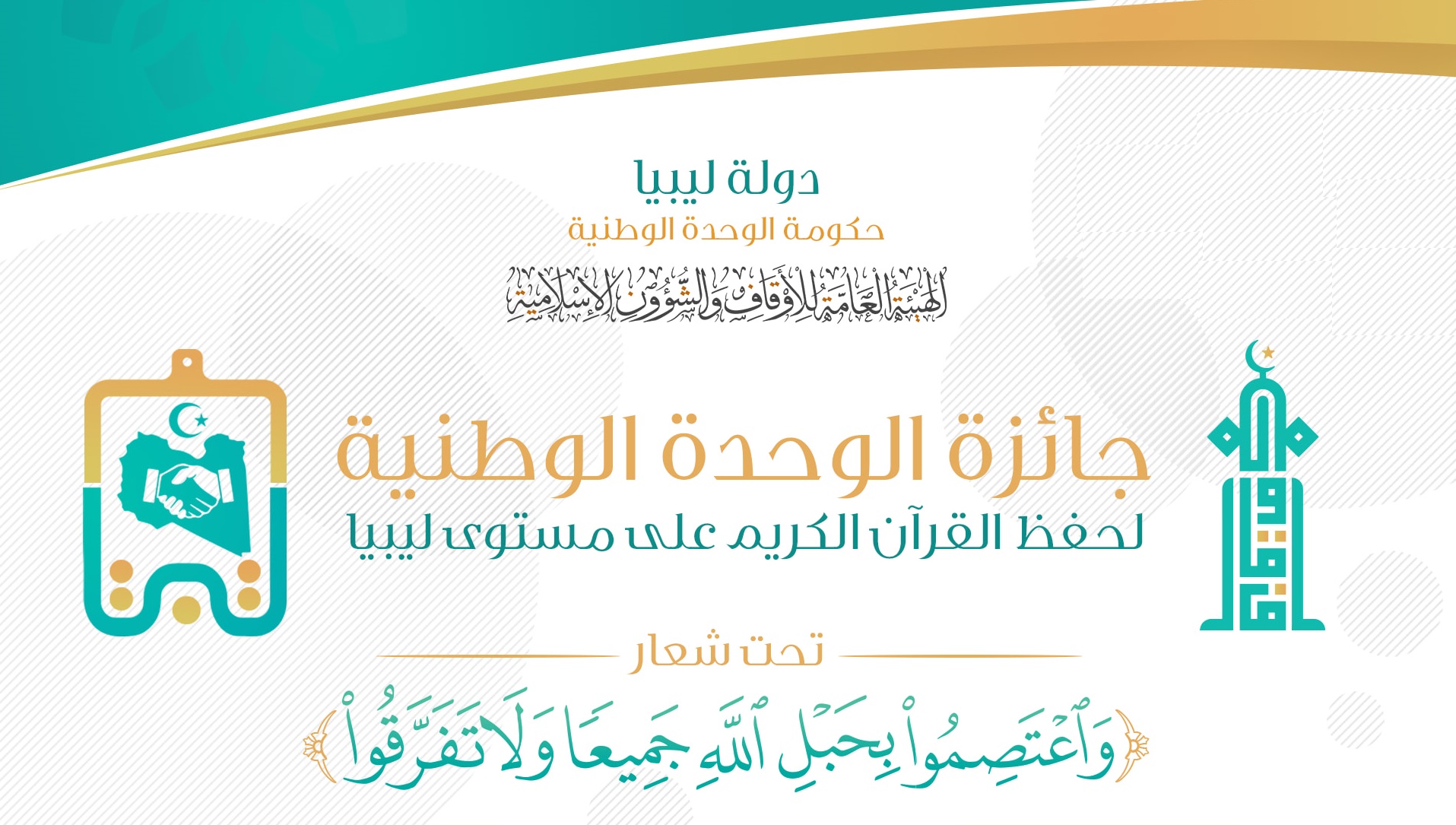 أعلنت الهيئة العامة للأوقاف والشؤون الإسلامية عن إقامة جائزة الوحدة الوطنية لحفظ القرآن الكريم على مستوى ليبيا.
