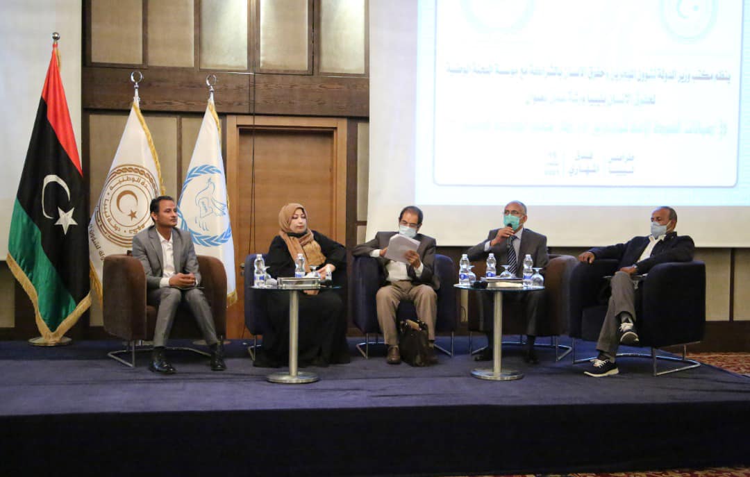 نظمت وزارة الدولة لشؤون المهجرين وحقوق الإنسان بحكومة الوحدة الوطنية، اليوم الاثنين، ورشة عمل حول ضمانات العودة الآمنة للمهجرين بالداخل والخارج، بمشاركة النائب بالمجلس الرئاسي عبدالله اللافي، ووكيل وزارة الداخلية للشؤون العامة اللواء محمود سعيد، ووكيلي وزارة الخارجية للشئون السياسية محمد عيسى، وللتعاون والمنظمات عمر الكتي، وبحضور الأمين العام المساعد والمنسق المقيم ومنسق الشؤون الإنسانية للأمم المتحدة في ليبيا جورجيت غانيون.