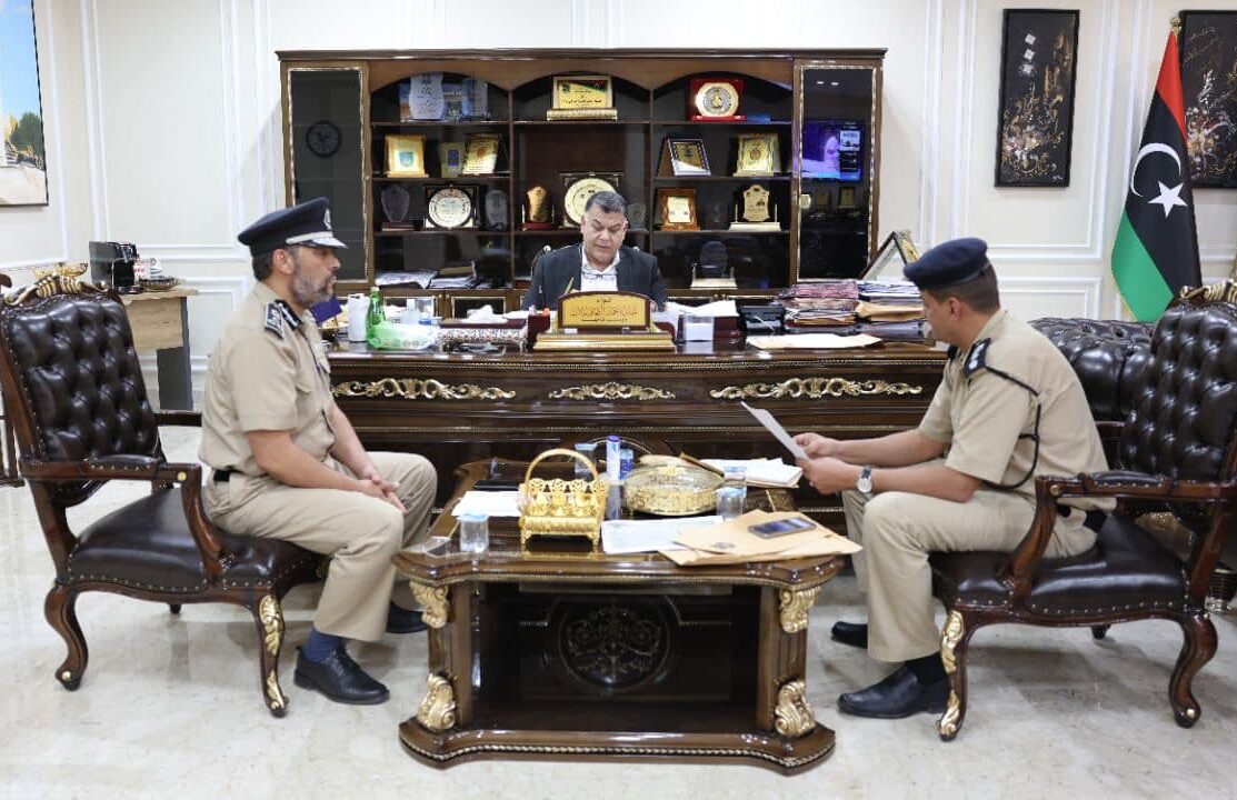 عقد وزير الداخلية بحكومة الوحدة الوطنية اللواء خالد مازن، اجتماعاً بمكتبه في طرابلس، اليوم الأحد، مع مدير أمن شحات عقيد أنيس الحاسي، ومدير الإدارة العامة لشؤون الآليات عميد منصور كليب.