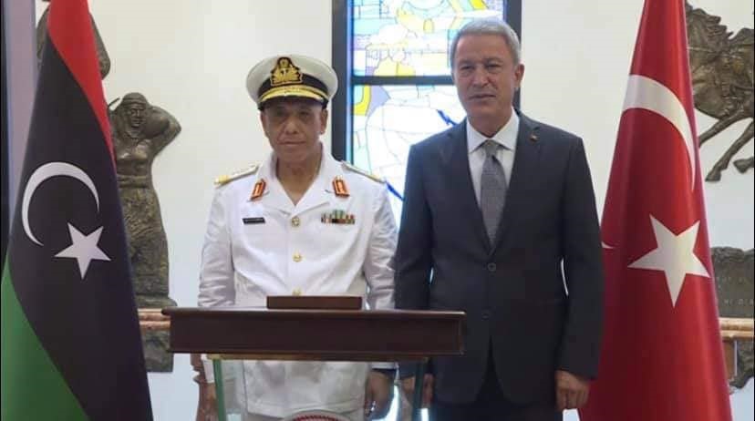 استقبل وزير الدفاع التركي خلوصي أكار بمقر وزارة الدفاع التركية في العاصمة أنقرة، رئيس أركان القوات البحرية الليبية التابعة لحكومة الوفاق اللواء بحار عبد الحكيم أبوحولية، الذي يقوم بزيارة رسمية إلى تركيا بدعوة من الأدميرال عدنان أوزبال قائد القوات البحرية التركية.