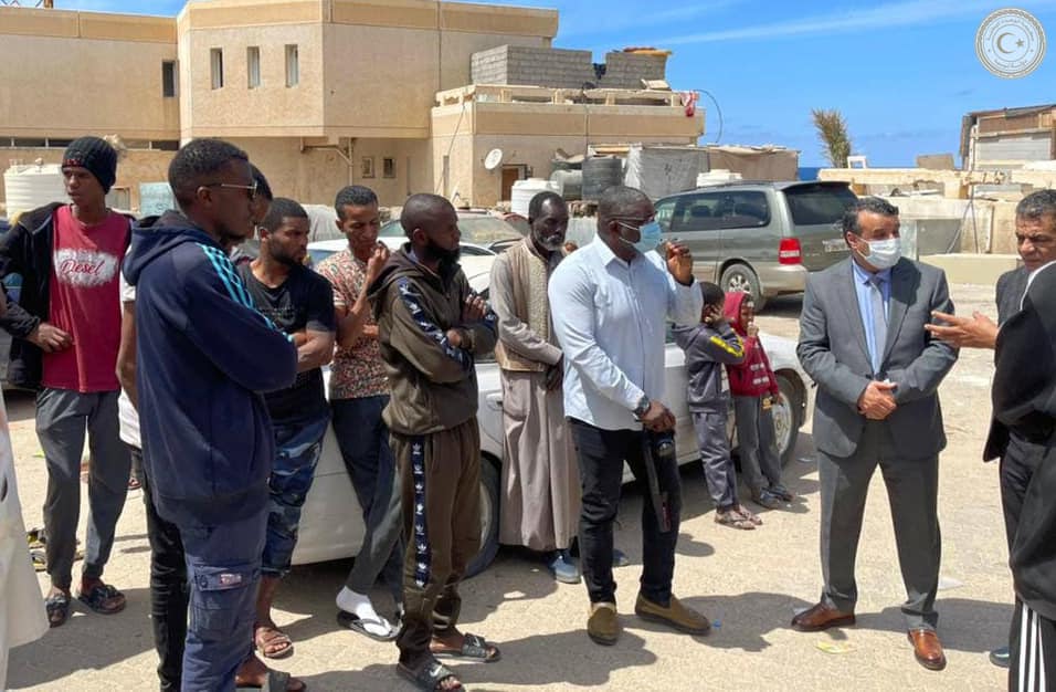 وزير الدولة لشؤون المهجرين وحقوق الإنسان يتفقد نازحي تاورغاء بمقر الأكاديمية البحرية بجنزور طرابلس 19 أبريل…