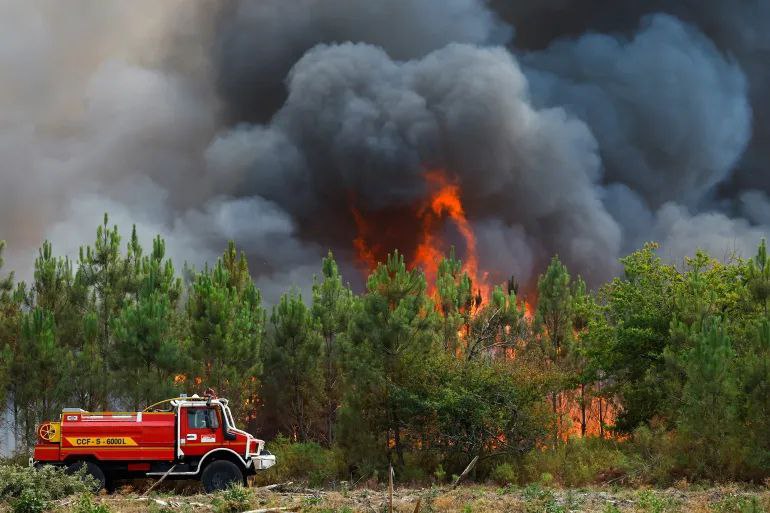 هذا وتعيش فرنسا وأجزاء واسعة من أوروبا موجة حر شديدة غير مسبوقة في عام 2025، حيث بلغت درجات الحرارة مستويات قياسية وصلت إلى 40 درجة مئوية في بعض المناطق، مما يزيد من خطر اندلاع حرائق الغابات وانتشارها بسرعة.