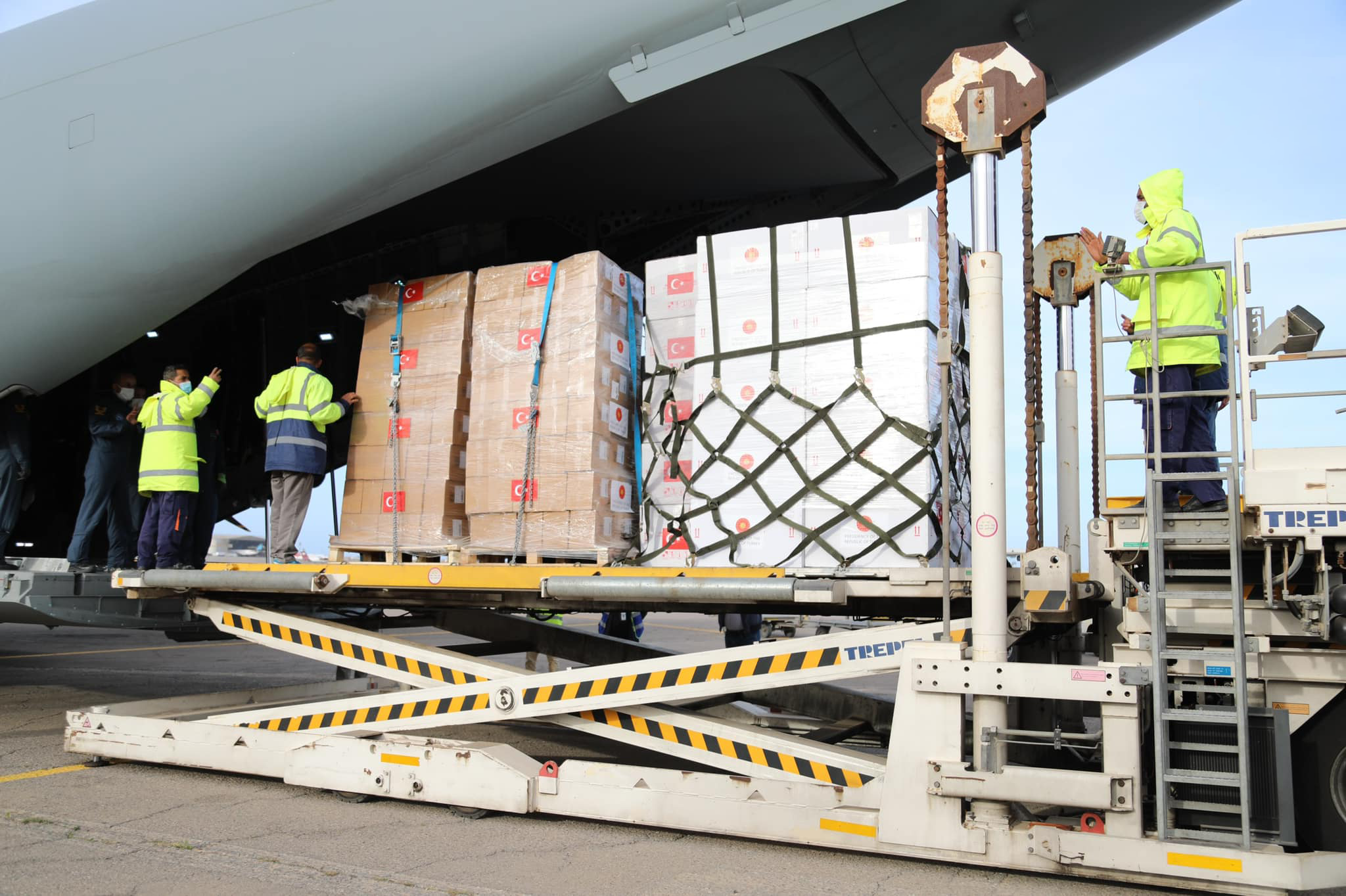 وصول 150000 جرعة من لقاح سينوڤاك الصيني وشحنة من الادوية الخاصة بمرضى فايروس كورونا الى طرابلس قادمة من جمهورية تركيا…