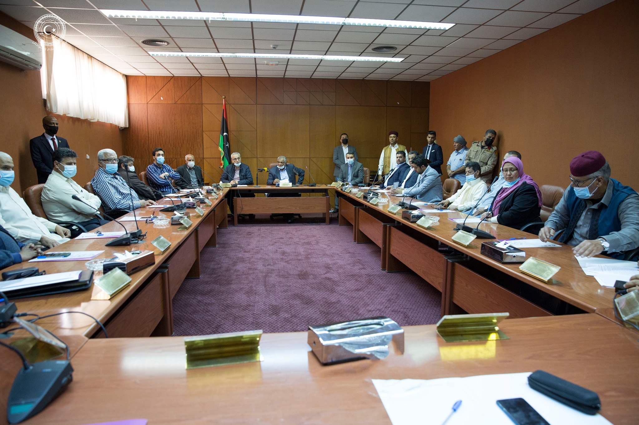 ونوقش خلال الاجتماع ملف مهجري ونازحي مدينة بنغازي من النواحي المتعلقة بتوفير الاحتياجات العاجلة لهم والنظر في الجوانب المتعلقة بإعادة إعمار المناطق المتضررة والمدمرة جراء الحرب.