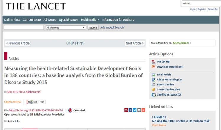 عرض بحث نشرته دورية “لانسيت” الطبية أمس الأربعاء أول تقييم لترتيب 188 دولة بشأن “أهداف الأمم المتحدة للتنمية المستدامة” التي تهدف إلى تعزيز الصحة بتحسين البيئة والغذاء والمياه وتقليل الفقر.
