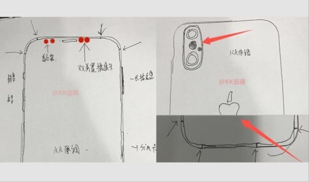 أما من حيث تصميم الهاتف، فقد ظهرت على موقع “ويبو” الصيني رسومات يدوية تظهر الواجهتين الأمامية والخلفية لهاتف آيفون 8 يقال إن من رسمها عامل في مصنع فوكسكون المُصنِّع الرئيسي لهواتف آيفون.